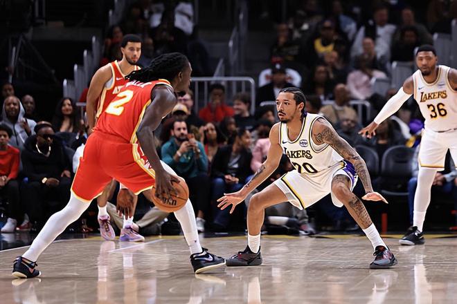 本場比賽中,湖人的替補(bǔ)后場新星小尼克-史密斯(Nick Smith Jr.)的狀態(tài)出現(xiàn)了明顯的下滑。史密斯全場出場23分27秒,投籃8中1,三分線外4中1,僅得到了3分1籃板2助攻1搶斷的數(shù)據(jù),還有2次失誤和1次犯規(guī),正負(fù)值為+8。史密斯也是得到了不少的出場時間和出手機(jī)會,然而他的進(jìn)攻效率一塌糊涂,他的得分能力和投射能力都完全沒有發(fā)揮出來,他在進(jìn)攻選擇方面的問題也是明顯體現(xiàn)了出來,而且他在傳球和組織方面的能力也同樣沒有體現(xiàn)出來。史密斯在防守端的作用也是相當(dāng)有限的,同樣沒有展現(xiàn)出足夠的競爭力。本場比賽中史密斯的表現(xiàn)算是既不能攻又不能守,完全沒有起到應(yīng)該起到的作用。