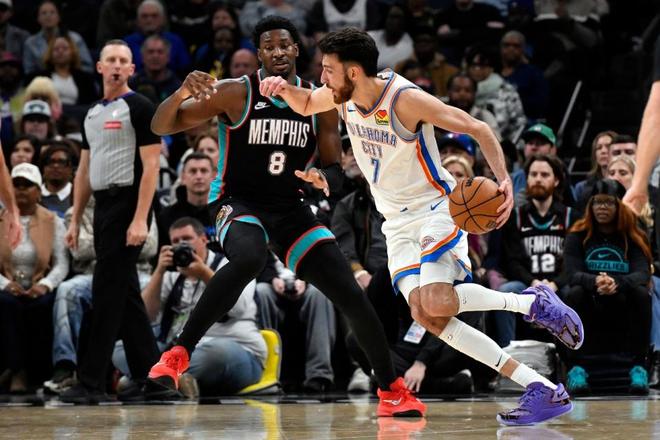 雷霆上一場客場132-101大勝國王,灰熊上一場主場118-104戰(zhàn)勝獨行俠。本場雷霆缺少杰倫、維金斯等球員,灰熊缺少克拉克與小皮蓬等球員。首節(jié)開局雙方對攻維持9-9,雷霆連得4分取得領(lǐng)先,波普上籃追分。哈爾滕施泰因兩罰不中后補籃命中,霍姆格倫與莫蘭特對攻一記三分,灰熊連續(xù)沖擊內(nèi)線追到差1分。華萊士三分命中,灰熊一波14-2攻勢反超8分,其中科沃德連中兩記三分與兩罰全中獨得8分,首節(jié)結(jié)束雷霆25-33落后灰熊。雷霆三分13中2,亞歷山大8中2僅得到5+3+3。